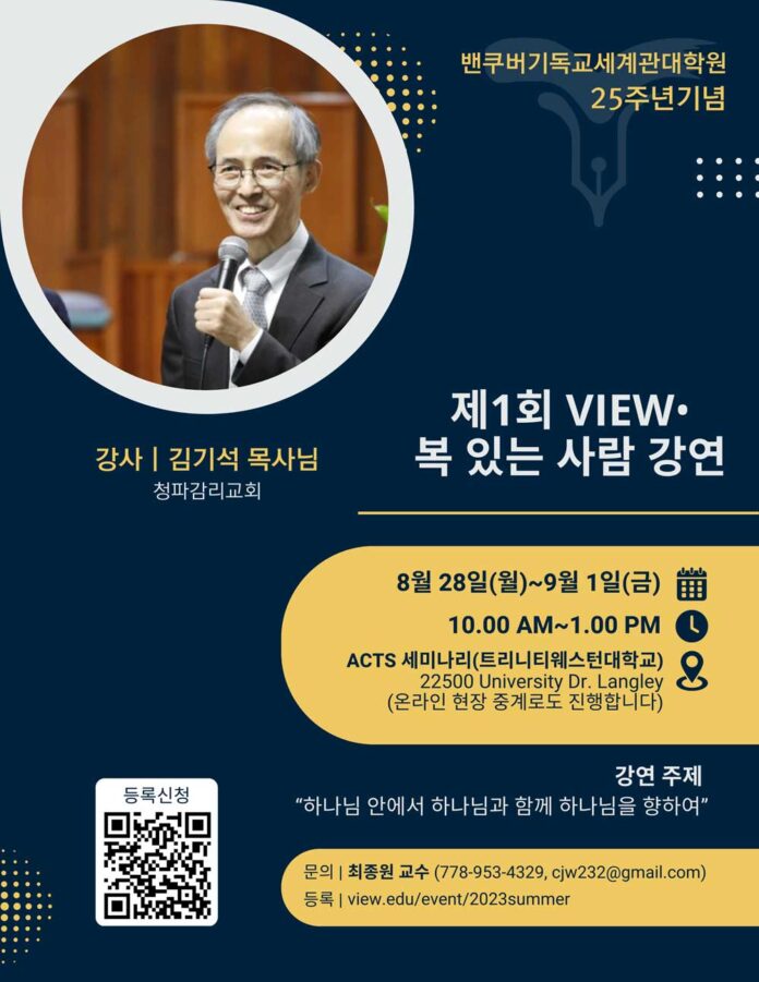 밴쿠버기독교세계관대학원(VIEW)에서 하는 공개 강연에 초대합니다.