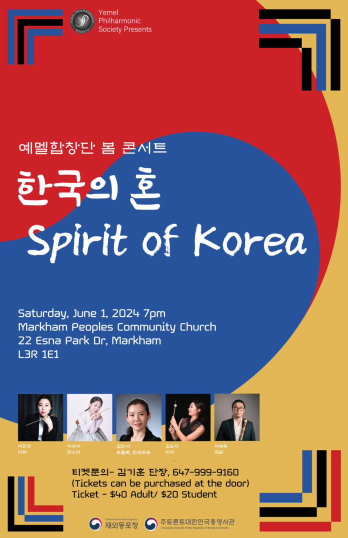 토론토 예멜합창단(단장 김기훈) 2024년 봄 정기 공연이 6월 1일(토) 오후 7시에 “Markham People’s Community Church”(22 Esna Park Dr. Markham)에서 펼쳐진다.