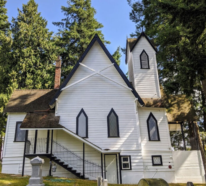 클레그는 “교회 공동체는 1882년에, 당시 길 건너에 있던 시청은 1881년에 설립되었지만, 기록에 따르면 교회는 1884년에 지어졌다는 것이 증명된다.”고 언급했다. 1881년 시청 건물은 현재 써리박물관에 위치해 있다.