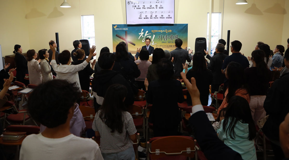지난 29일(주일) 새롭게 이전한 교회에서 창립 24주년을 맞이하며 감사예배를 드렸다. 이날 예배는 김대호 목사의 사회로 최정일 장로가 “24년간 밴쿠버예수사랑교회와 함께 하신 하나님께 감사를 드린다.”고 감사의 기도를 드렸다. 봉헌송으로 주일학교 교사 일동이 ‘이곳에 임하신’ 찬양곡을 올려드렸다.