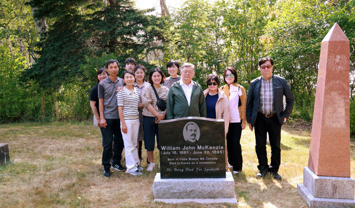 예배후 케이프 브레튼 한인교회(맥켄지 선교사의 출생지역이며 유네스코 세계문화유산 지역에 캐나다 정부에 헤리티지 교회로 등재된) 성도들과 윌리엄 맥켄지 선교사 묘소에 참배하며 남북평화 통일과 통일 후의 미래에 대해 현장에서 기념사를 전했다.