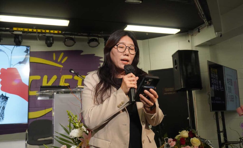 김 목사는 본격적으로 설교에 앞서 13년 전 집회에 참석해 자살과 죽음의 영으로부터 자유함을 얻고, 병원에서도 원인을 찾지 못했던 극심한 통증이 기도를 통해 치유받은 연세미 집사의 짧은 간증의 시간을 가졌다.(간증문은 00면에서 확인)