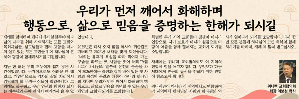 [2026] 지역별 교회협의회, 목사회 회장 신년사