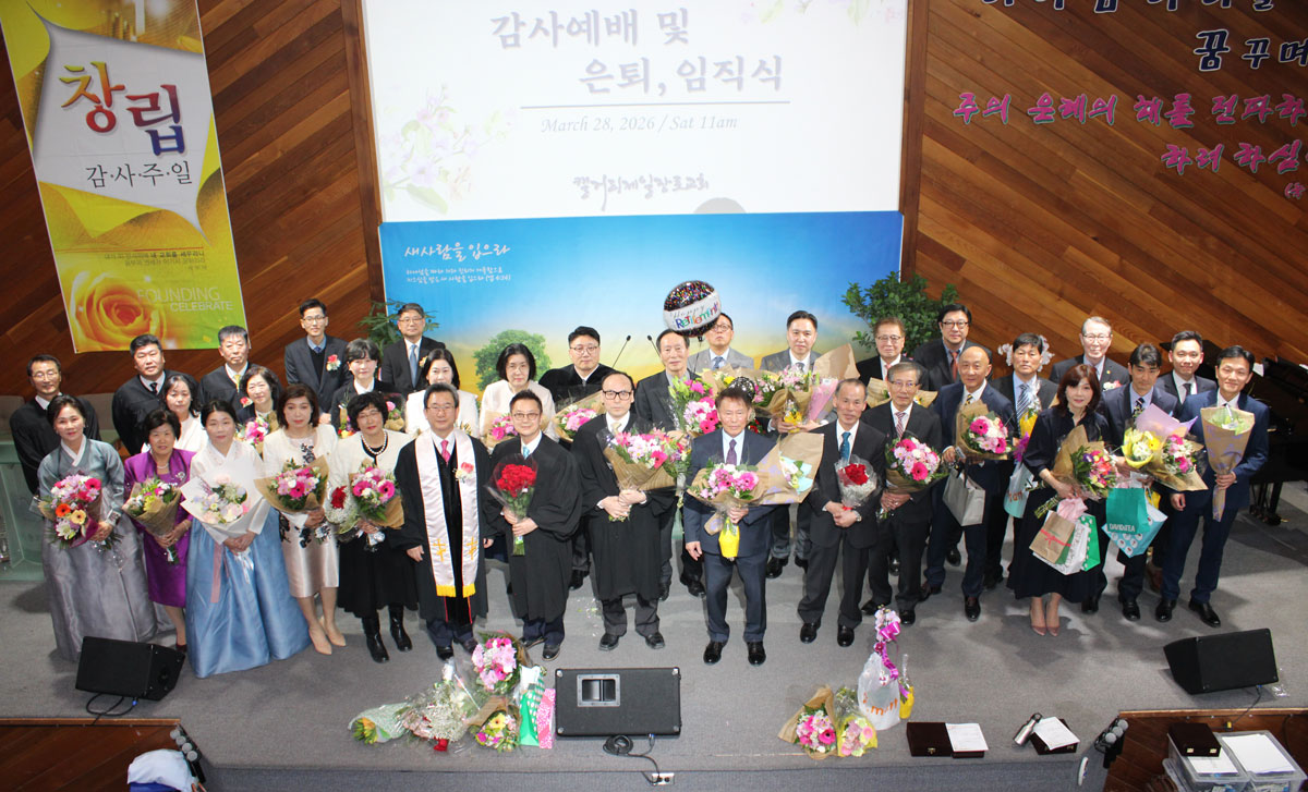 캘거리제일장로교회(강진우 목사)가 창립 50주년을 맞아 지난 3월 28일(토) 장로·안수집사·권사 임직 및 은퇴 예배를 드렸으며 29일(주일) 창립 50주년 감사예배를 드리며, 교회 창립 반세기를 기념하며 뜻깊은 자리로 하나님께 영광을 돌렸다. 이날 감사예배에는 은퇴 6명, 임직 21명이 새롭게 일꾼으로 세워졌다.