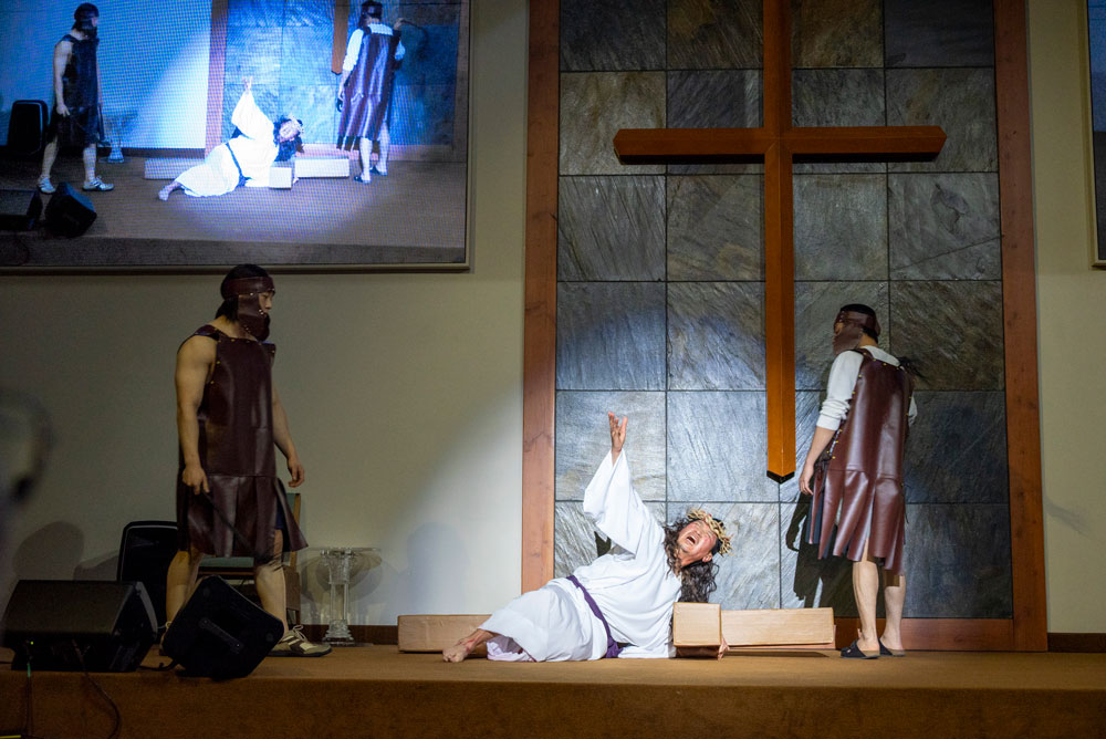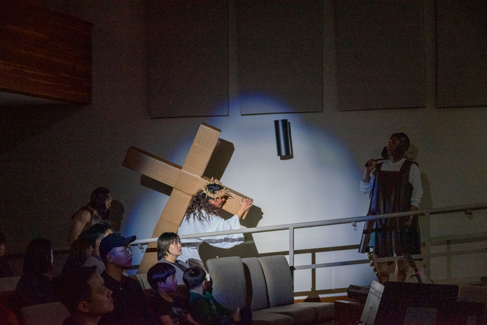 성금요일 저녁 예배에서는 글로리아 성가대의 ‘비아 돌로로사’ 찬양이 울려 퍼지는 가운데, 성도들이 직접 참여한 십자가 수난 성극이 이어졌다. 찬양과 연극이 결합된 무대는 예수 그리스도의 고난과 십자가의 길을 생생하게 전달하며, 말씀의 메시지를 보다 입체적으로 체험하게 했다.