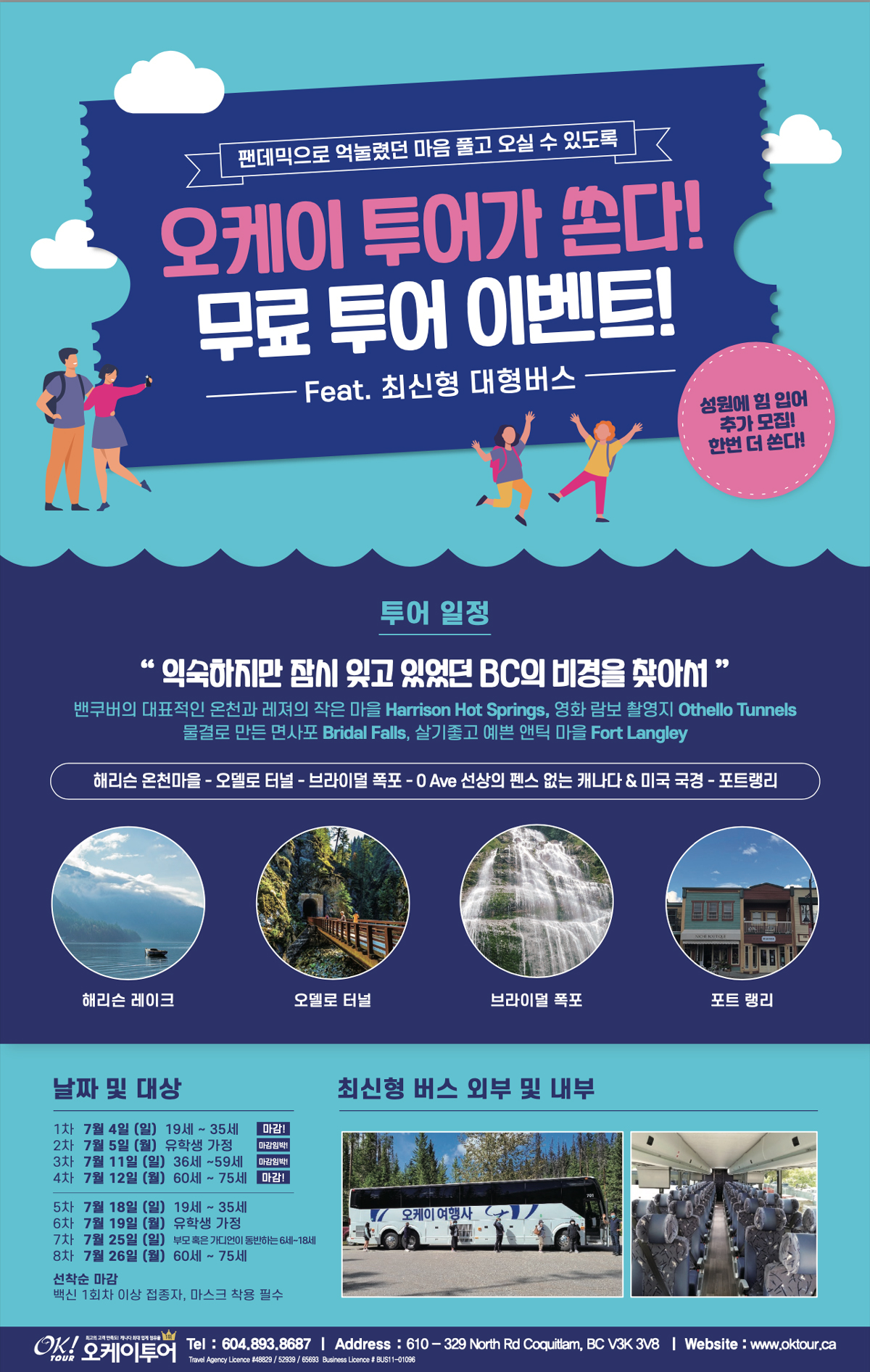상담 문의 : oktour.ca / 전화 문의 : 1-604-893-8687 (캐나다)