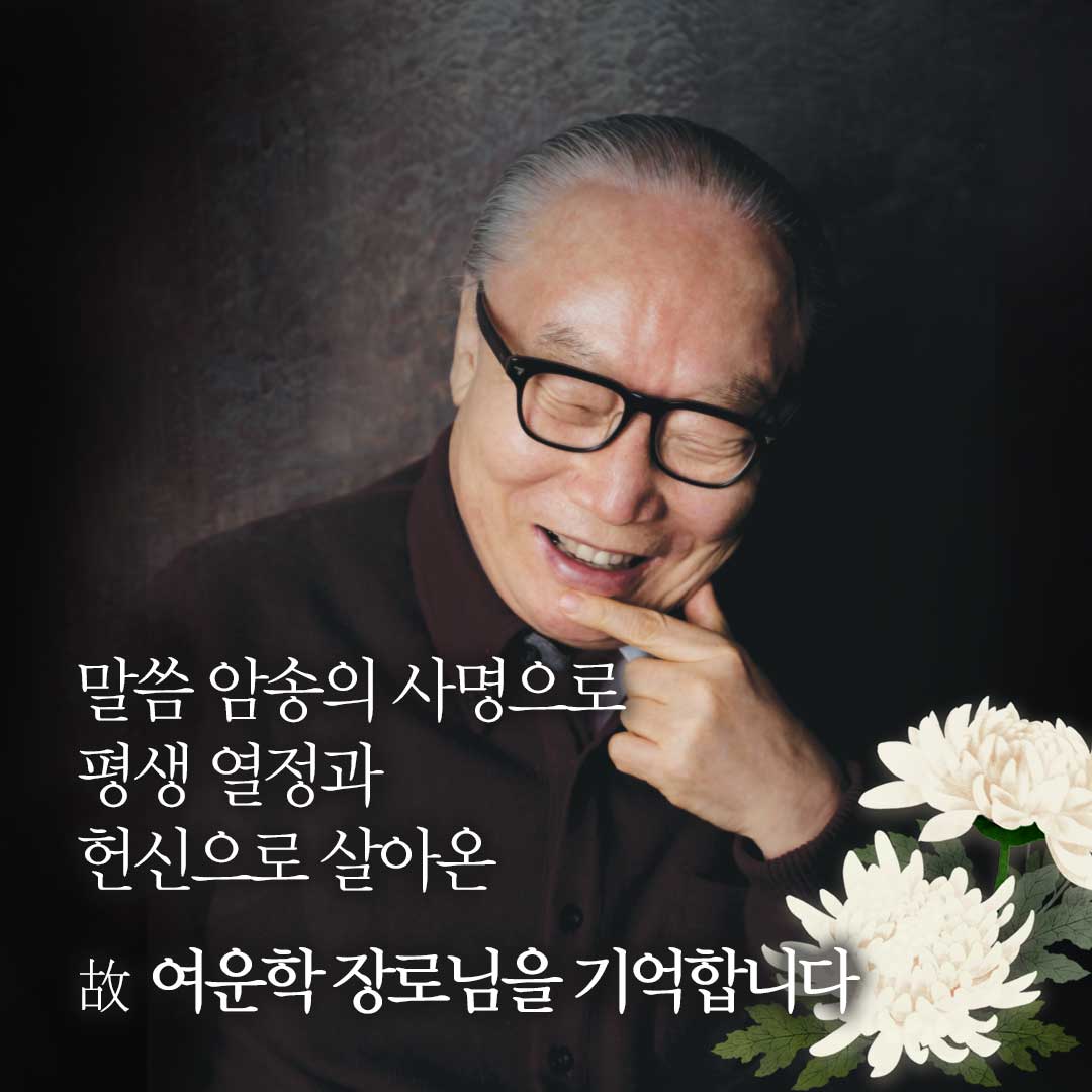 말씀암송에 전념하며 그 유익을 다음세대에 전해주기 위한 사역에 온 힘을 쏟은 여운학 장로님께서 지난 2022년 3월15일 주님 품에 안기셨습니다.