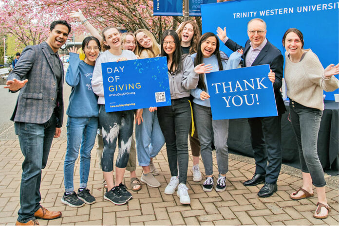 B.C주 랭리(Langley)의 기독교 종합대학인 트리니티 웨스턴 대학(TWU)은 지난 4월 말 우크라이나 전쟁과 같은 전쟁과 지구촌 분쟁으로 인해 생활에 지장을 받은 TWU 학생들의 장학금과 생활을 지원하기 위한 첫 번째 ‘기부의 날’ 모금행사를 가졌다.
