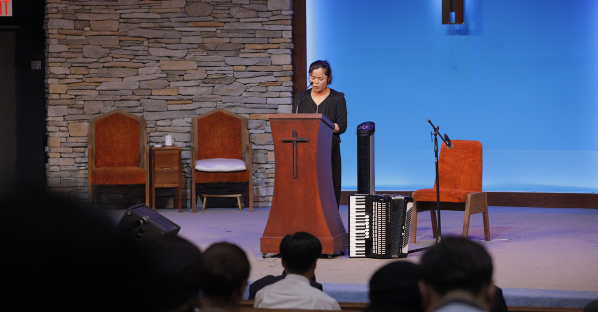 이옥 선교사는 이날 로마서 9:1-3절 본문으로 ‘인민군 선전원에서 하나님 선전원으로’라는 제목으로 말씀을 전했다. 말씀에 앞서 이옥 선교사는 아코디언(북한말 손풍금) 연주로 하나님께 찬양을 올려드렸다. 이 선교사는 “두 분다 선생님이신 부모님 밑에서 주체사상에 세뇌되어 살아왔습니다. 그리고 군에 입대하여 부대원들에게 주체사상을 선전선동하고 사기를 올리기 위해 목소리를 높이며 지냈습니다. 그러나 어느 날 식량난으로 부모님을 잃고 굶주림에 죽어가는 동생을 엎고 탈영을 결심하고 중국으로 탈북 했습니다. 탈북하다 죽을 고비를 넘겼으며 중국으로 가는 마지막 길인 업고 강을 건너다 동생을 잃어버리는 사고를 당했습니다. 동생때문에 탈북을 강행했는데 동생을 강에서 잃어버리고 살고 싶지 않았습니다. 이후 선교사님의 계속되는 전도에도 계속해서 거부하며 지내다 어떤 사람의 신고로 북송되는 위기에 처했습니다. 북송 전 감옥에 갇혀 있을 때 하나님이 함께 하심을 경험하고 하나님의 은혜로 북송 되지 않게 되었습니다. 이후 탈북민을 돕는 선교단체에서 기적적으로 강에서 잃어버린 죽은줄만 알았던 동생을 만났습니다. 이 모든 것이 하나님의 은혜입니다.”라고 간증을 전했다.
