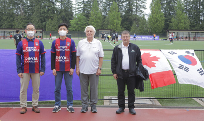 코퀴틀람에 연고를 둔 최초 한인 축구단FC파이토젠코이노니아(단장 지경훈)는 지난 3일(주일) 홈 마지막 경기를 앞두고 송해영 총영사와 공식 스폰서 회사 로얄캐네디언 방효복 대표와 퍼시픽코스트사커리그 회장 데이브 콜라드 회장등이 참여한 가운데 코퀴틀람의 퍼시 페리 스타디움(Percy Perry Stadium, 1290 Pipeline Rd, Coquitlam)에서 시축 행사를 진행했다.