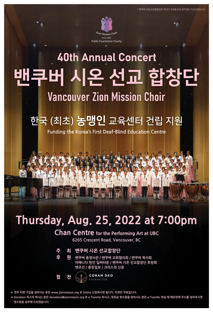 밴쿠버시온선교합창단 창립 40주년 정기연주회 안내