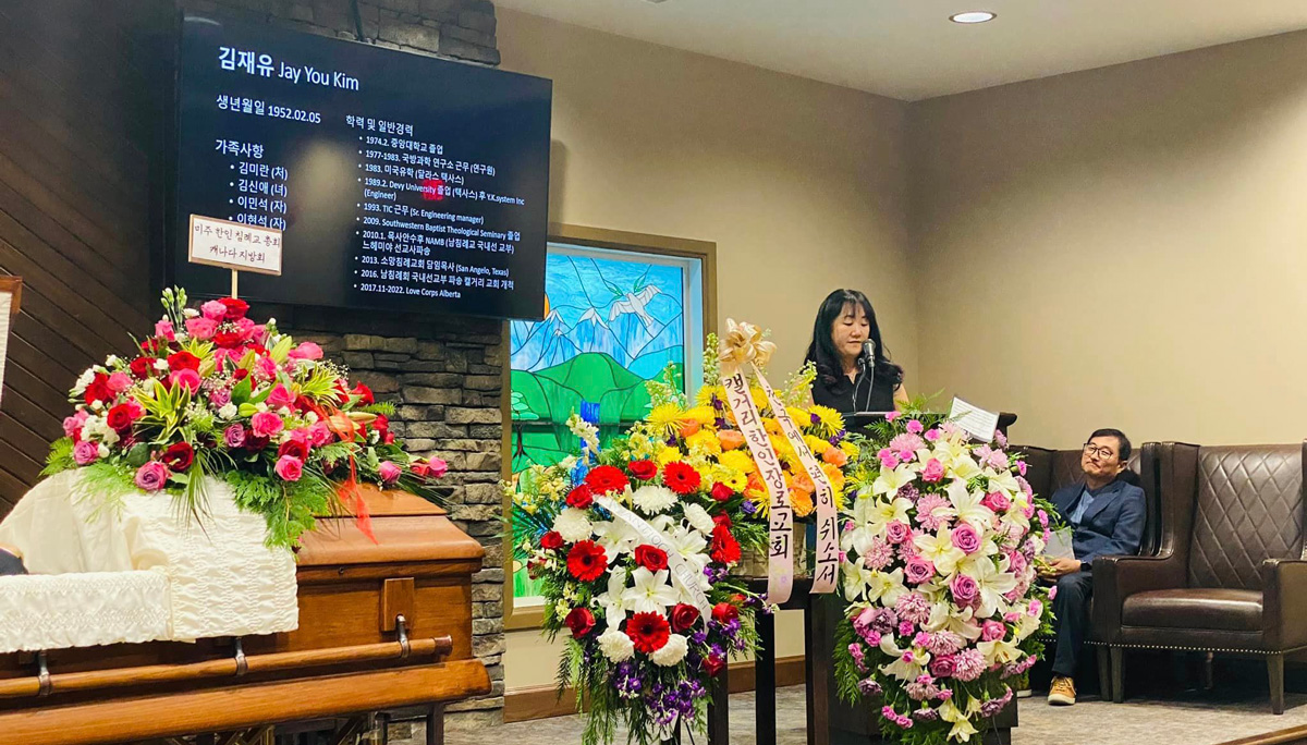 장례식은 11월 22일 (화) 오전 10시. 에드먼튼 Hainstock’s Funeral Home & Crematorium에서 치루어졌다. 몇몇 목회자들은 토요일 담임목사 취임예배 참석 후, 다시 사역지로 돌아가 주일예배를 마치고, 바로 비행기를 타고 다시 에드먼튼으로 왔다.