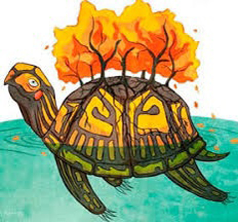 거북이 섬(Turtle Island) 이야기는 주로 캐나다 동부지역에 거주하는 알곤킨어 및 이로쿼이아어를 사용하는 원주민들이 대륙을 지칭할 때 사용하는 용어다. 거북이는 세상을 지탱하는 존재다. 여기에는 창조에 대한 다양한 영적 신념이 담겨 있기도 하고, 원주민 자신들의 정체성과 문화, 자율성 및 환경에 대한 깊은 존중의 의미까지 포함되어 있다.