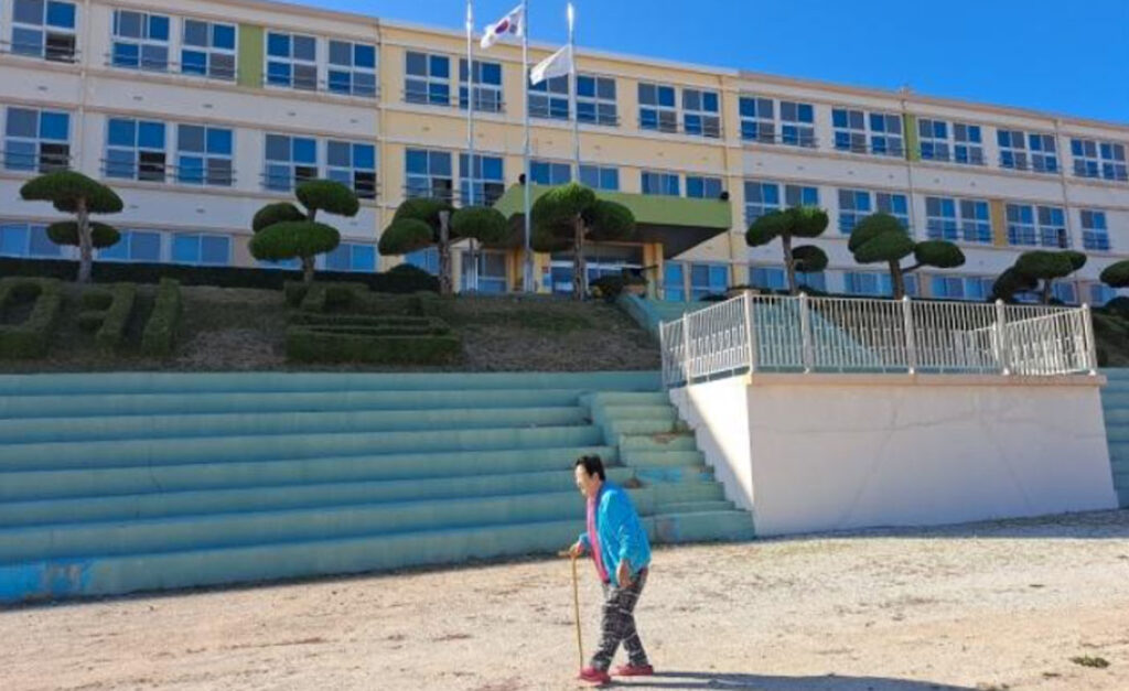 할머니 혼자서 고등학교 운동장을 한 바퀴 걸어갑니다. 6년을 바깥에 못 나오신 분이 저렇게 힘을 내십니다.
