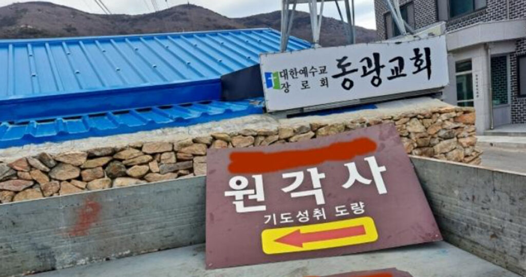 “목사님, 무당 내 보냈습니다. 빨리 와서 무당 간판 철거해 주세요.”