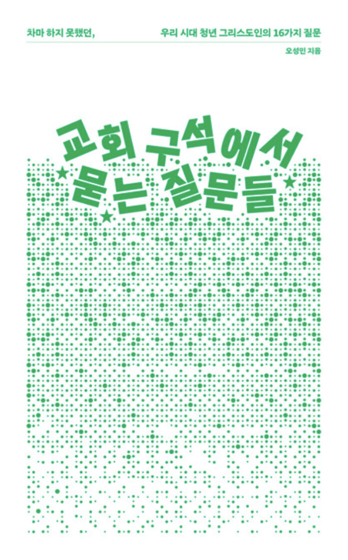 저자 오성민은 2017년에 유투브 방송 ‘다마스커스TV’를 시작한 개신교 유튜버로서 신학을 정식으로 공부하지도, 논문도 쓰지 않은 성도라고 하면서도 스스로는 랜선 선교사라고 강조한다. 저자가 현직 약사로 살아가면서도 어떤 신학생이나 목사들보다 더 방대한 독서와 신학적 통찰을 가지고 변증이 필요한 이 시대에 온라인 상에서 카메라 앞에 서있기 때문일 것이다. 실시간 방송과 함께 영상물을 만드는 크리에이터로서 이 책의 부제이기도 한 “차마 하지 못했던, 우리 시대 청년 그리스도인의 16가지 질문”은 저자의 말처럼 신앙을 약하게 만드는 곤란한 질문이 아니라 이웃을 위한 빛나는 질문이라는 생각을 하게 한다.