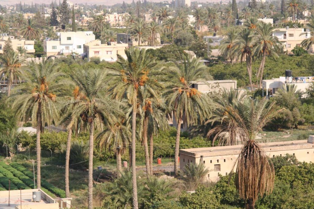 모세가 느보산의 비스가 봉우리에 올라가 내려다 본 가나안 땅의 비옥한 모습은 종려나무로 뒤덮힌 오아시스 도시, 여리고였다. 광야에 펼쳐진 종려나무가 대규모로 자라나는 모습은 그에게 경이로웠을 것이다. 여리고가 여호수아에 의해 파괴되기 전부터 “종려나무의 도시”라고 불렸는데 그 이유는 해수면으로부터 230미터 낮은 곳에 위치해 있어서 산소가 많고, 여름에는 덥고 겨울에도 춥지 않아 나무가 자라나기에 최적의 날씨를 가지고 있으며, 현재 공식 명칭이 술탄의 샘물(Ein es-Sultan)인 엘리사의 샘(Elisha’s Spring)으로부터 1년내내 공급되는 샘물로 인해 대규모의 대추야자 나무들이 자라날 수 있었기 때문인 것이다.
