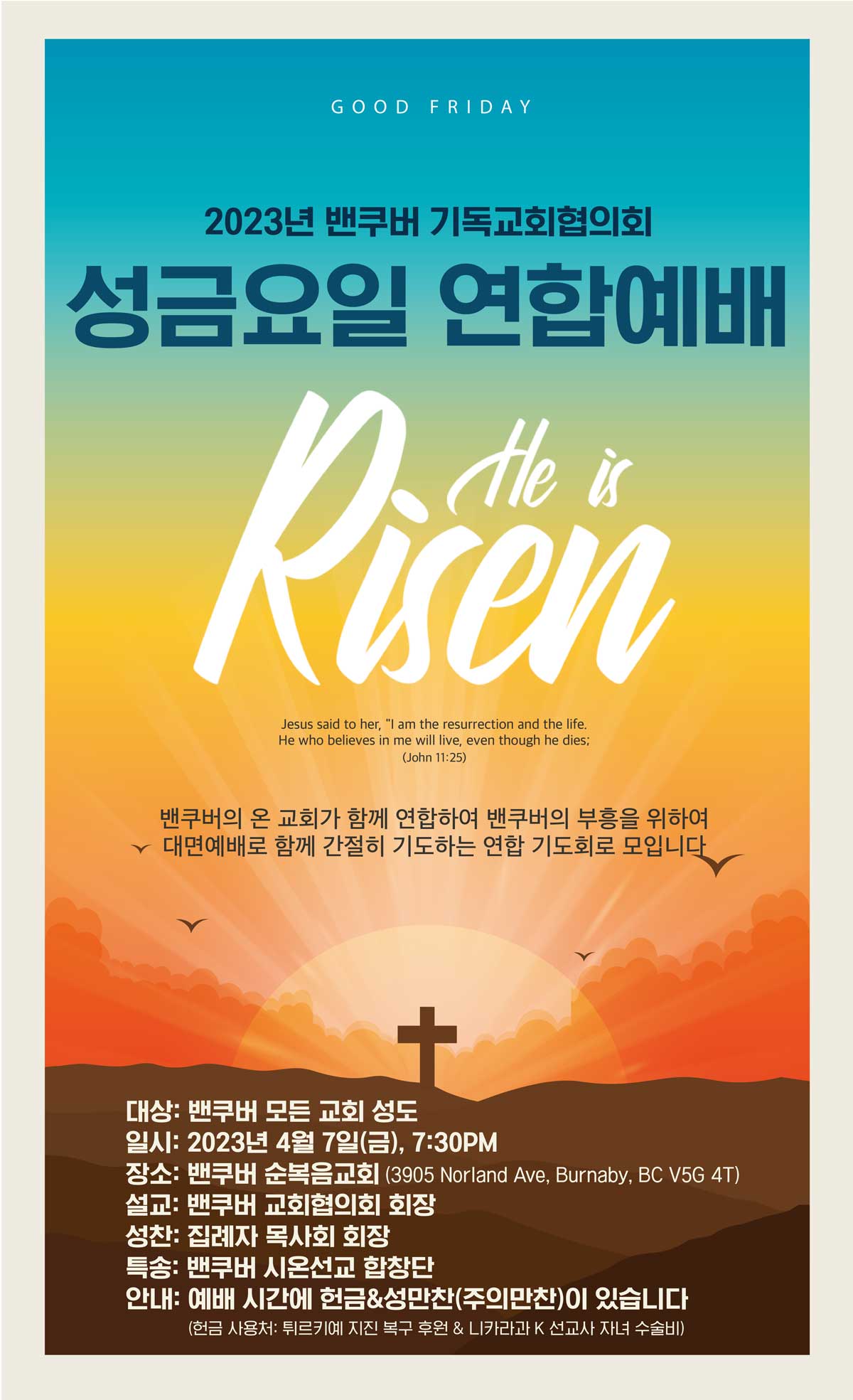 [연합예배] 밴쿠버 지역 성금요일 연합집회 안내