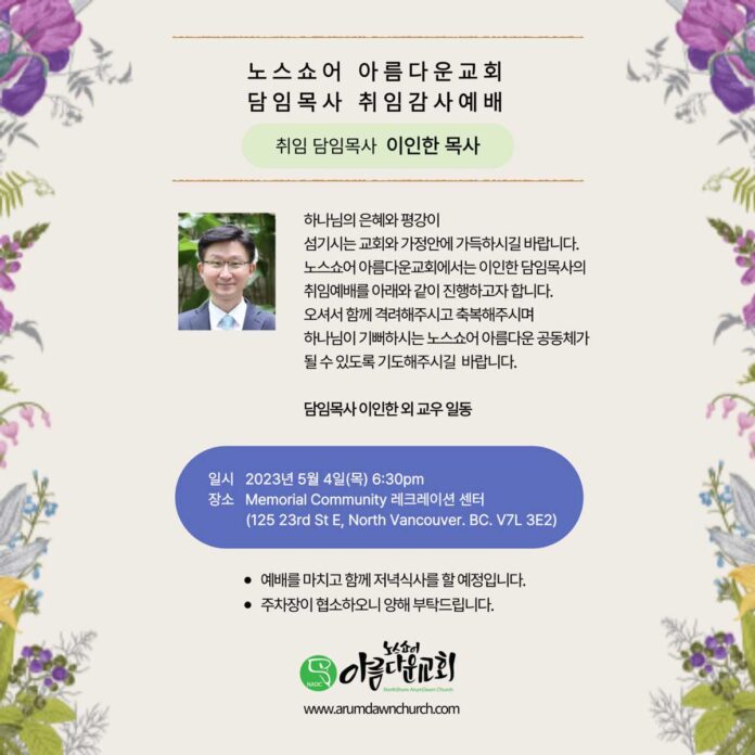 노스쇼어아름다운교회 이인한 목사 취임감사예배