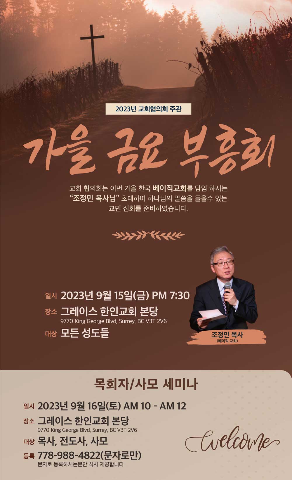 [부흥회] 밴쿠버교회협의회 주관 조정민 목사 초청 연합 집회