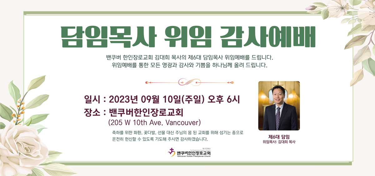 밴쿠버한인장로교회 담임목사 위임감사예배