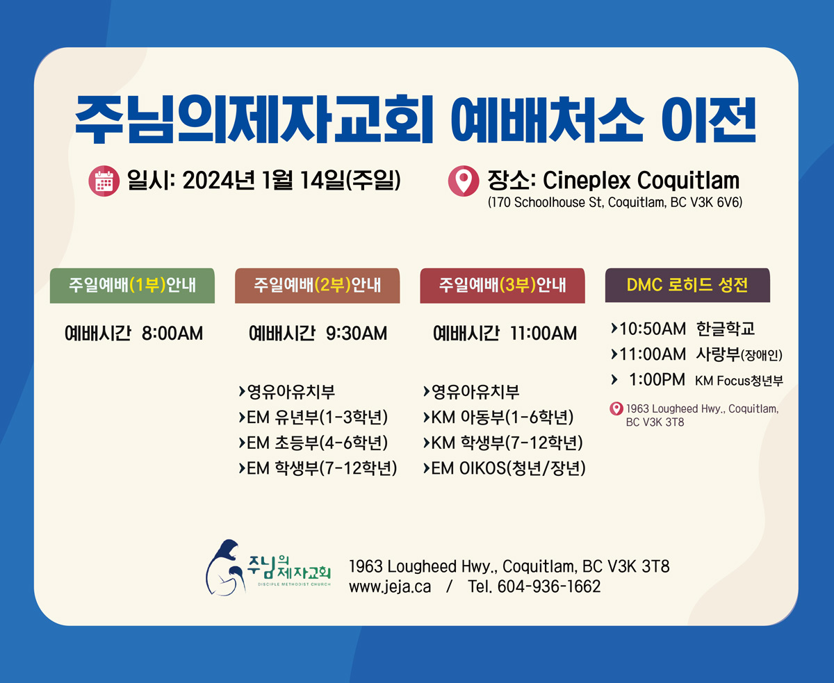 주님의 제자교회 예배처서 이전 안내