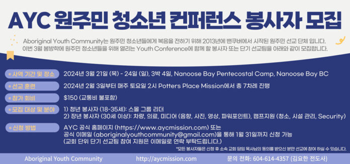 AYC 원주민 청소년 컨퍼런스 봉사자 모집