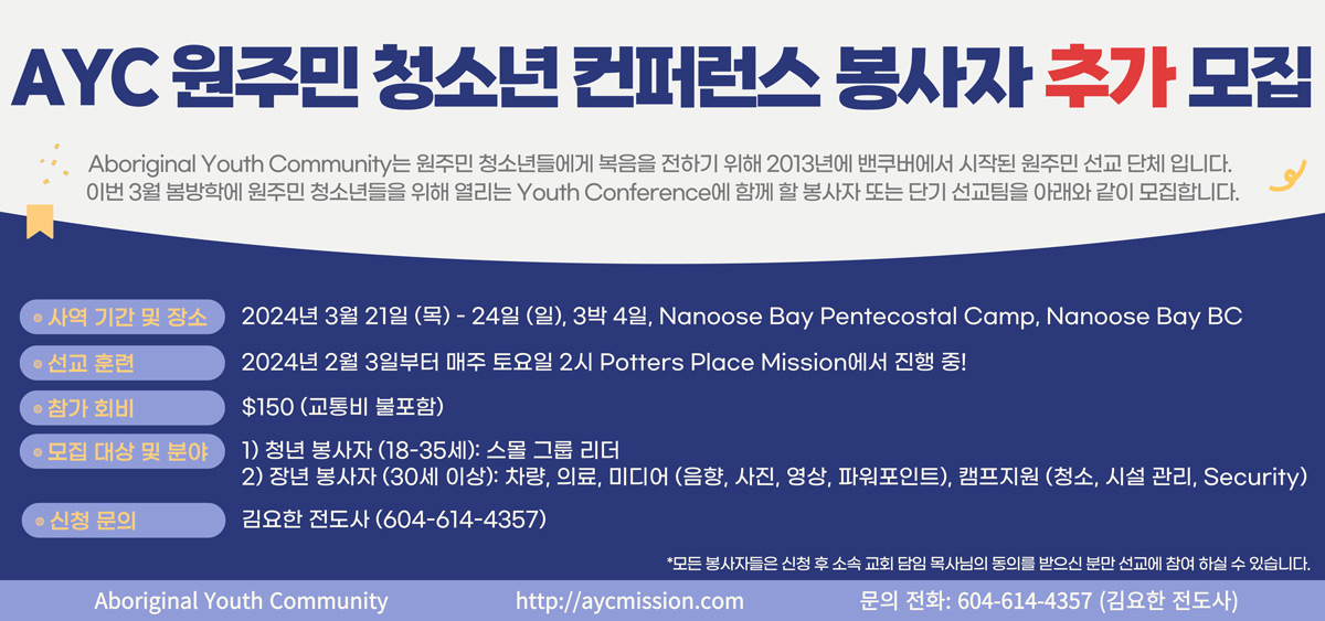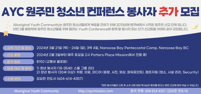 AYC 원주민 청소년 컨퍼런스 봉사자 추가 모집 안내