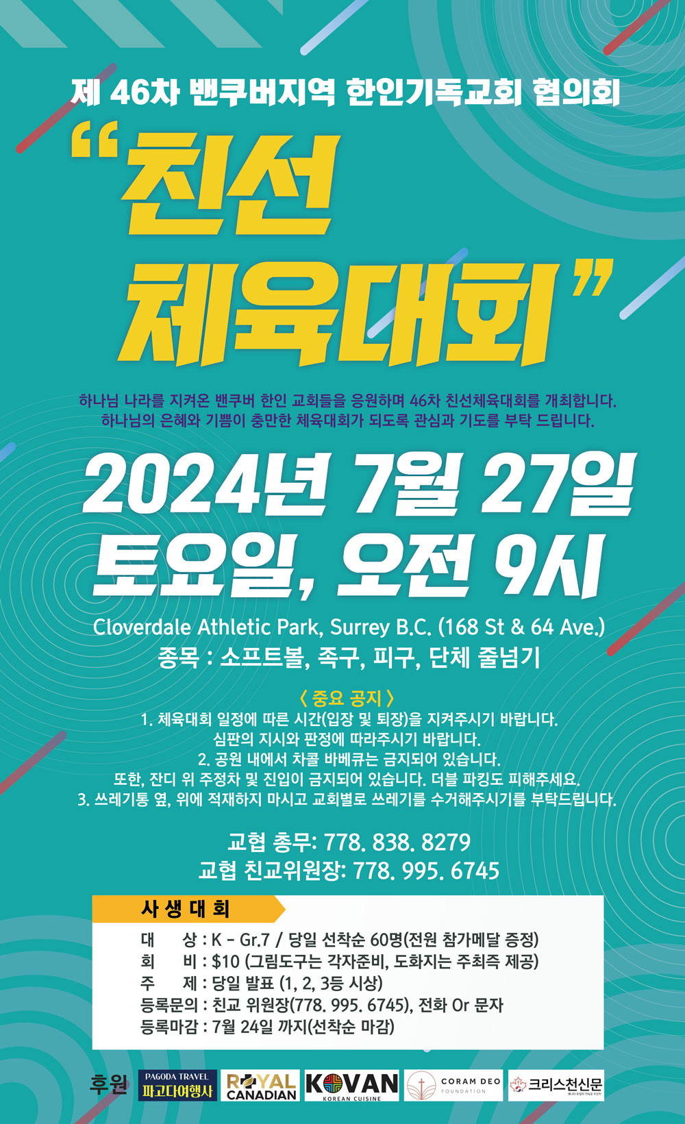 [교협체육대회] 밴쿠버 교회협의회 주관 체육대회 안내