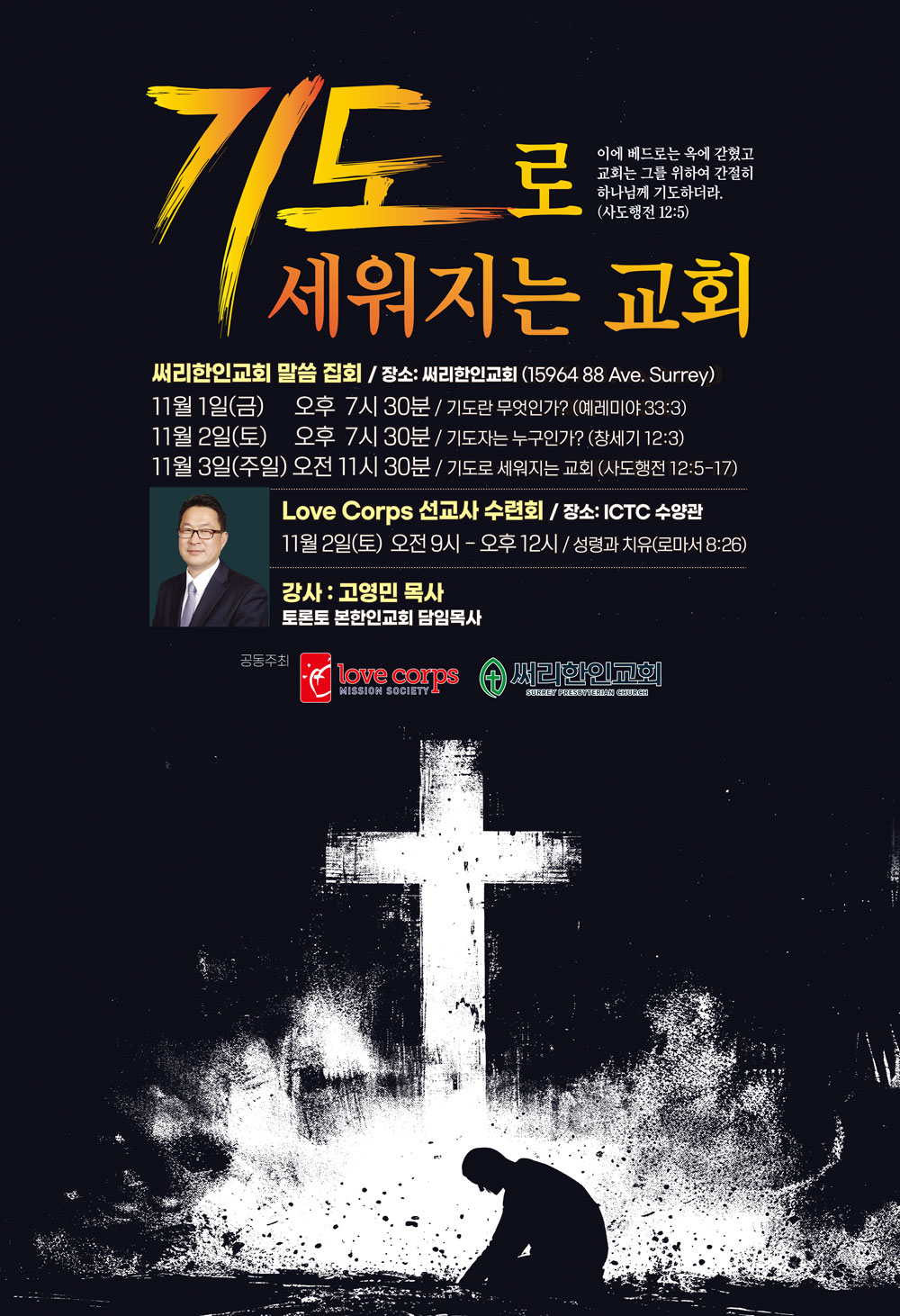 행사안내 [말씀집회] 고영민 목사 초청 사랑의군대, 써리한인교회 공동주최 ‘기도로 세워지는 교회’ 10월 25, 2024 [말씀집회] 고영민 목사 초청 사랑의군대, 써리한인교회 공동주최 ‘기도로 세워지는 교회’