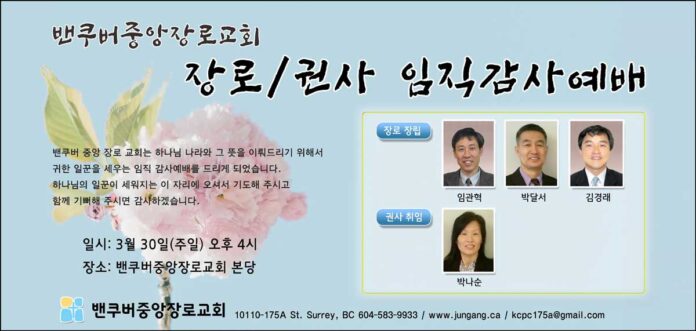 밴쿠버중앙장로교회 장로/권사 임직 감사예배
