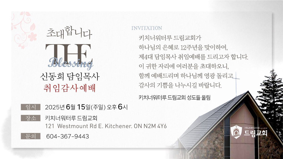 키치너워터루 드림교회 신동희 목사 취임감사예배