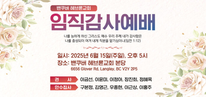 [임직예배] 밴쿠버 헤브론교회 임직감사예배 안내