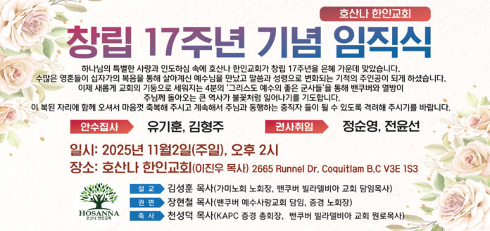 호산나교회 창립 17주년 및 임직예배 안내