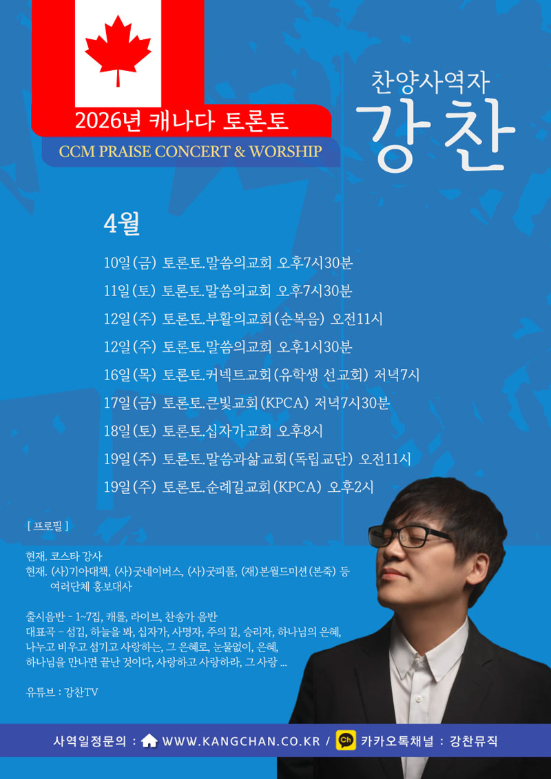 [찬양집회] 강찬 목사 토론토 찬양 집회 안내
