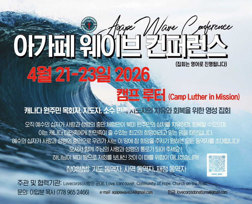 행사안내 [원주민 목회자 영성집회] 캐나다 원주민 목회자, 지도자, 소수 민족 지도자 영성집회 4월 3, 2026 [원주민 목회자 영성집회] 캐나다 원주민 목회자, 지도자, 소수 민족 지도자 영성집회