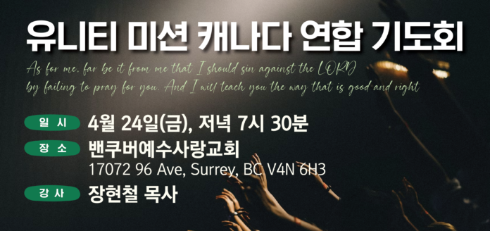 유니티 미션 캐나다 연합 기도회 안내
