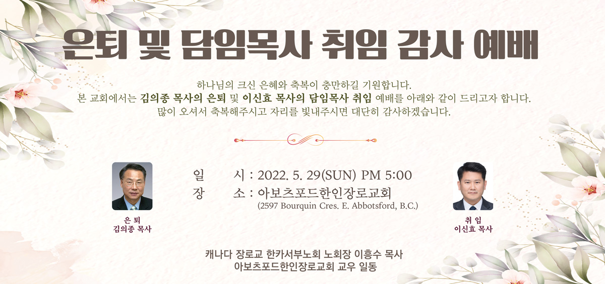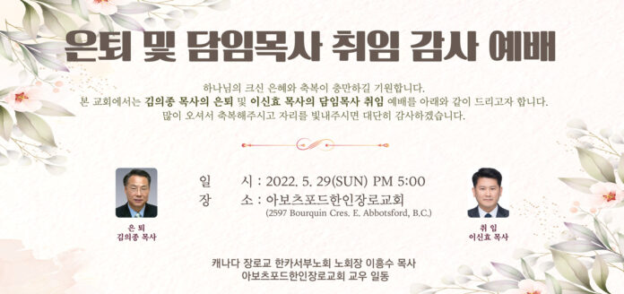 아보츠포드한인장로교회 은퇴 및 담임목사 취임 감사예배