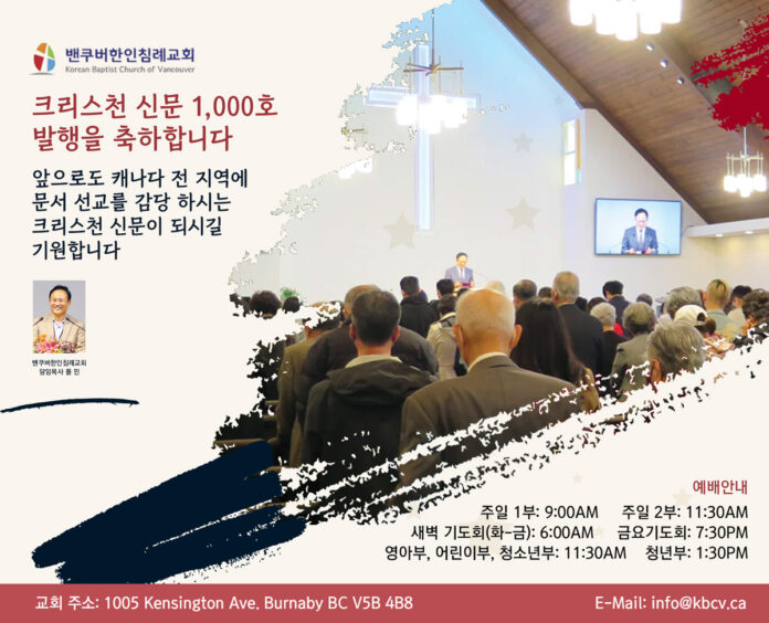밴쿠버한인침례교회 크리스천신문 1000호 발행을 축하합니다.