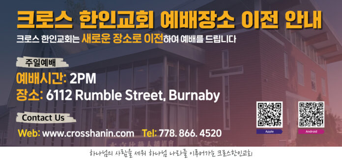 [교회이전] 크로스한인교회 예배장소 이전 안내
