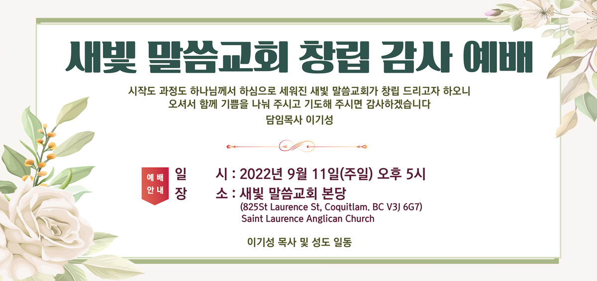 [창립감사예배] 새빛말씀교회 창립감사예배 안내