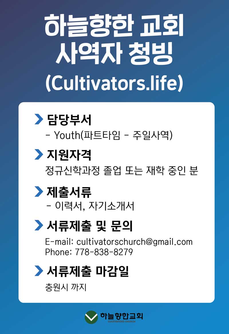 [청빙] 밴쿠버 넘치는교회 사역자 청빙
