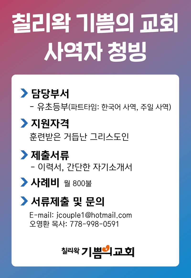 칠리왁 기쁨의 교회 사역자 청빙