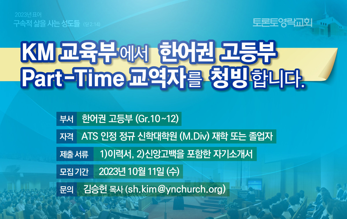 토론토 영락교회 한어권 파트타임 교역자 청빙