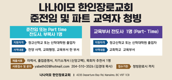 [청빙] 나나이모한인장로교회 준전임 및 파트 교역자 청빙