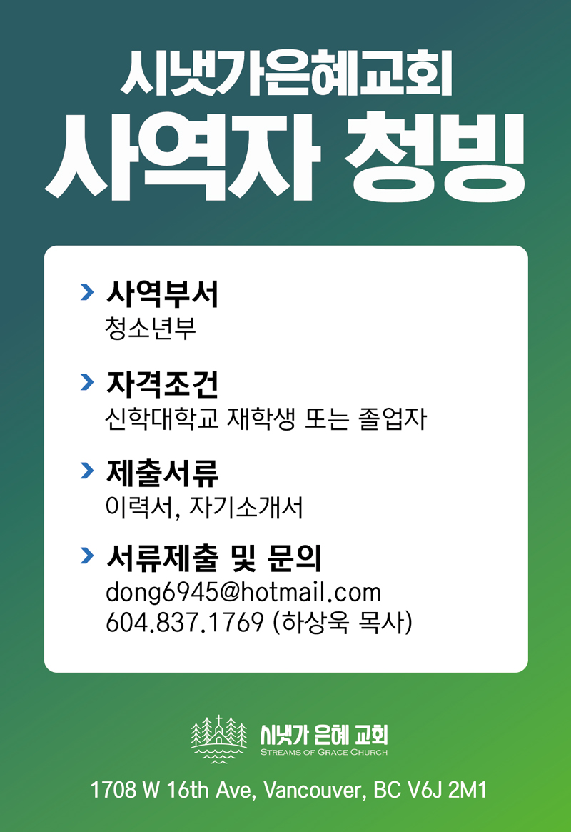 [청빙] 시냇가은혜교회 사역자 청빙