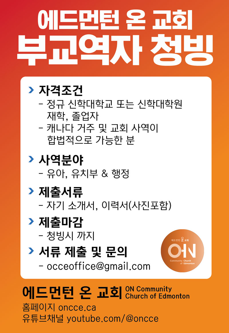 [청빙] 에드먼턴 온 교회 부교역자 청빙