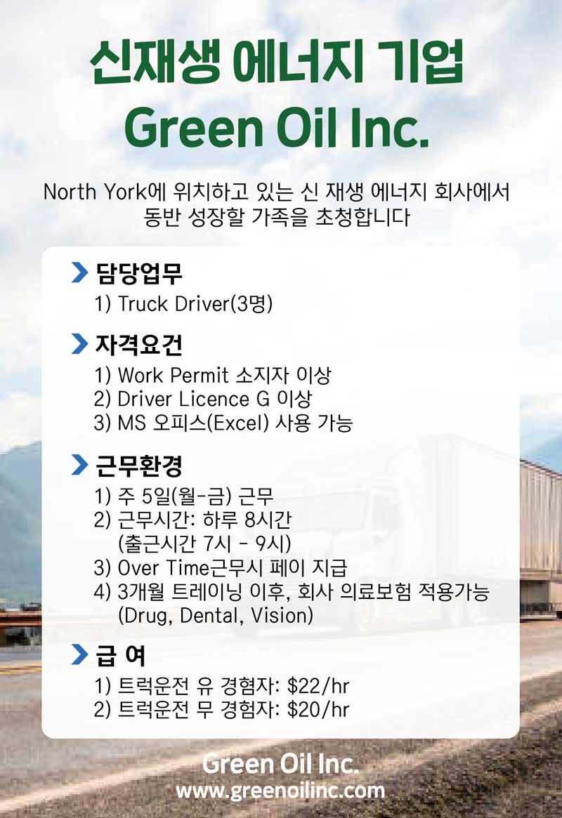 Home청빙 신재생에너지 기업 Green oil lnc. 드라이버 모집 [구인] 신재생에너지 기업 Green oil lnc. 드라이버 모집 By admin 2월 4, 2022 신재생에너지 기업 Green oil lnc. 드라이버 모집 FacebookXWhatsAppEmailNaver Previous article[청빙] 나나이모한인장로교회 담임목회자 청빙 공고(제출마감 기한 연장)Next article[반주자모집] 밴쿠버삼성교회 반주자 모집 Advertisment - Advertisment - 최신 청빙 [청빙] 리치먼드 주안에 교회 동역자 청빙 4월 10, 2026 [청빙] 칠리왁 주님의교회 교육전도사 청빙(연장) 3월 20, 2026 [담임목사청빙] 레스브릿지 한인교회 담임목사 청빙 3월 13, 2026 [청빙] 토론토 동산교회 반주자 청빙 3월 13, 2026 Load more 인기 청빙 [청빙] 헤브론교회 교역자 청빙 안내(8/12, 청빙완료) 7월 29, 2021 [청빙] 토론토 큰빛교회 사역자 청빙 안내 11월 4, 2021 [담임목사청빙안내] 밴쿠버한인장로교회 담임목사 청빙 안내 3월 25, 2022 [청빙] 밴쿠버 지구촌교회 청빙 안내 8월 6, 2021 Load more