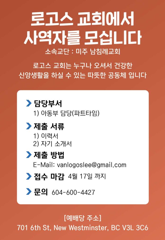 [청빙] 밴쿠버 지구촌교회 청빙 안내