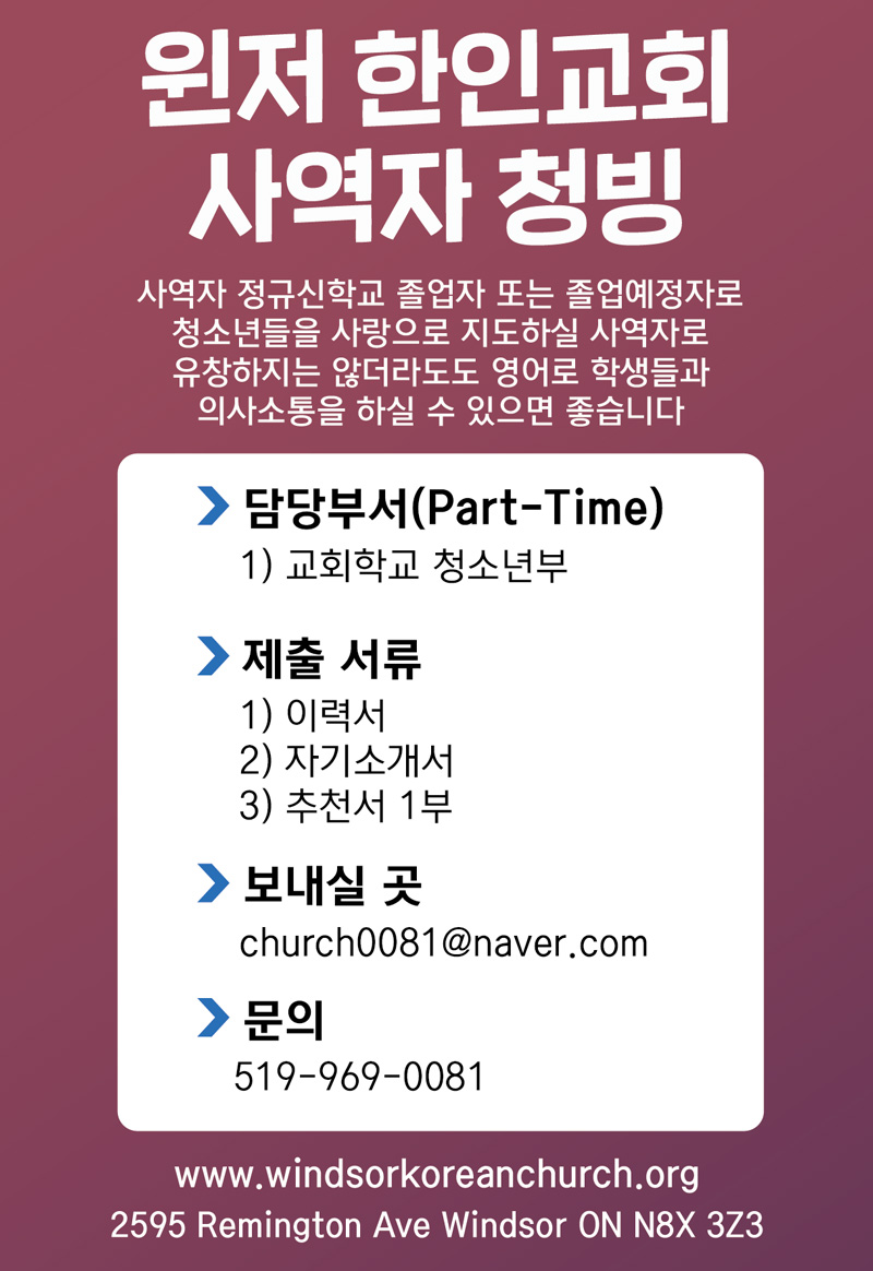 [청빙] 윈저한인교회 사역자 청빙